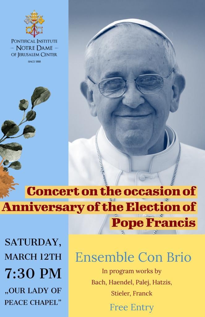 March 12, 7:30 PM. Apostichon. World premiere. Mariusz Monczak, violin; Norbert Palej, organ. Our Lady of Peace Chapel. Notre Dame Center, Jerusalem, Israel.